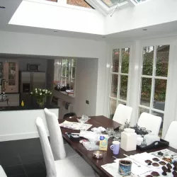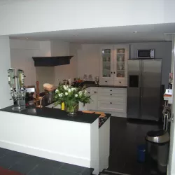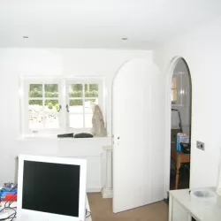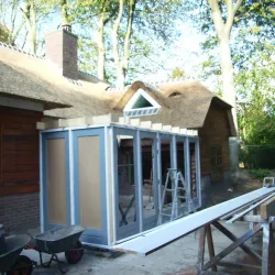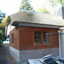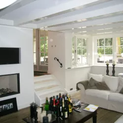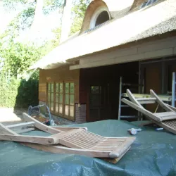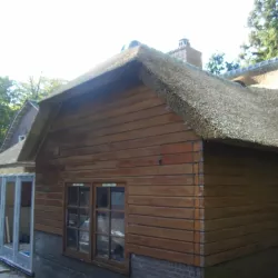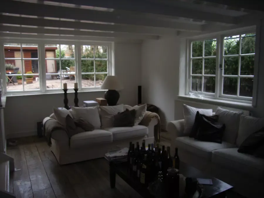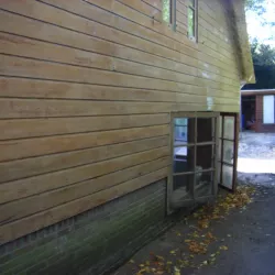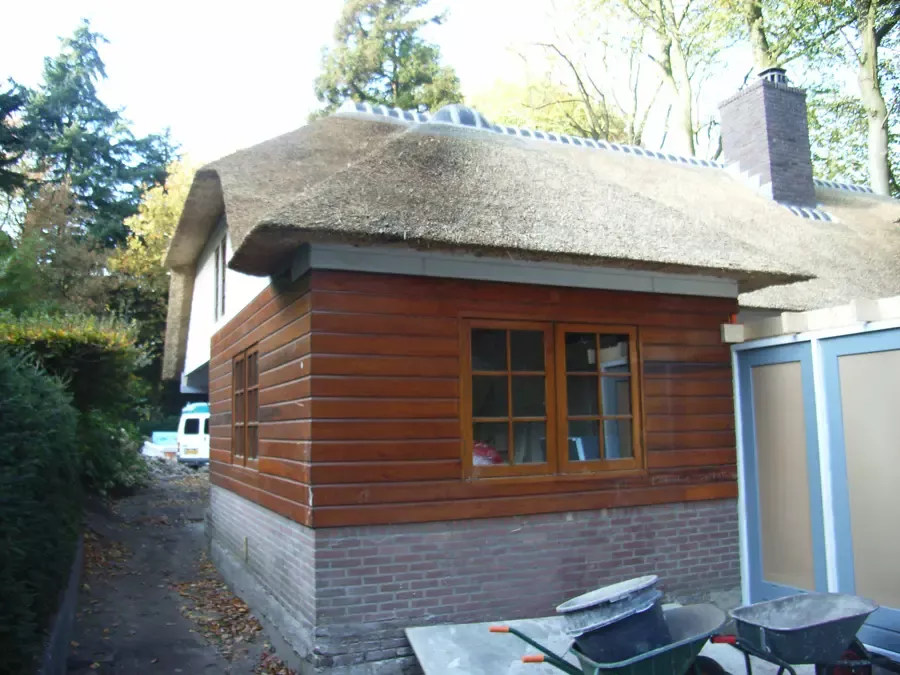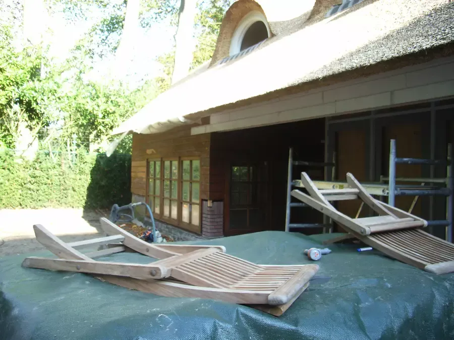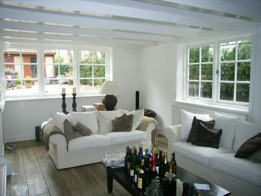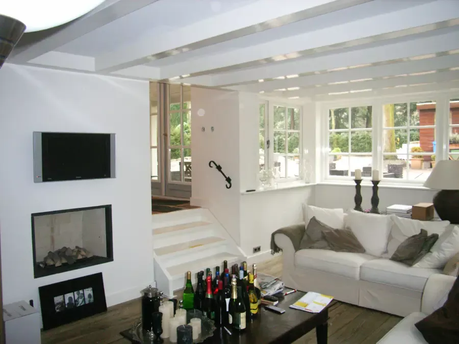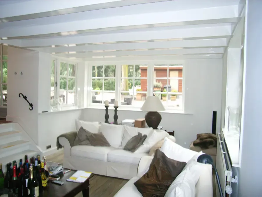 In Blaricum is van dit oude huis een moderne villa gemaakt, en Van Amsterdam heeft de volledige afwerking verzorgd. Aan de buitenzijde hebben we het oude lakwerk verwijderd en vervangen door een nieuw hoogglans verfsysteem. De rabbatdelen zijn behandeld met een vochtregulerend halfglans verfsysteem voor extra bescherming.