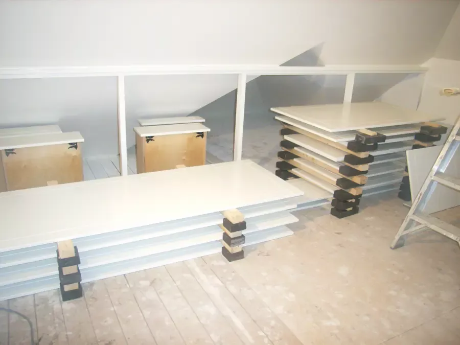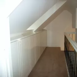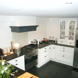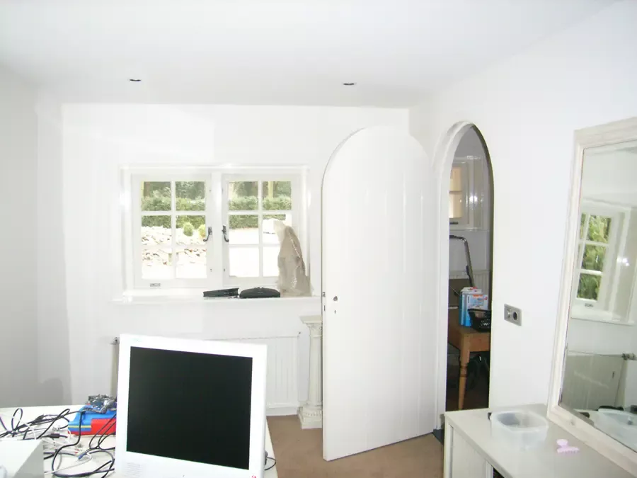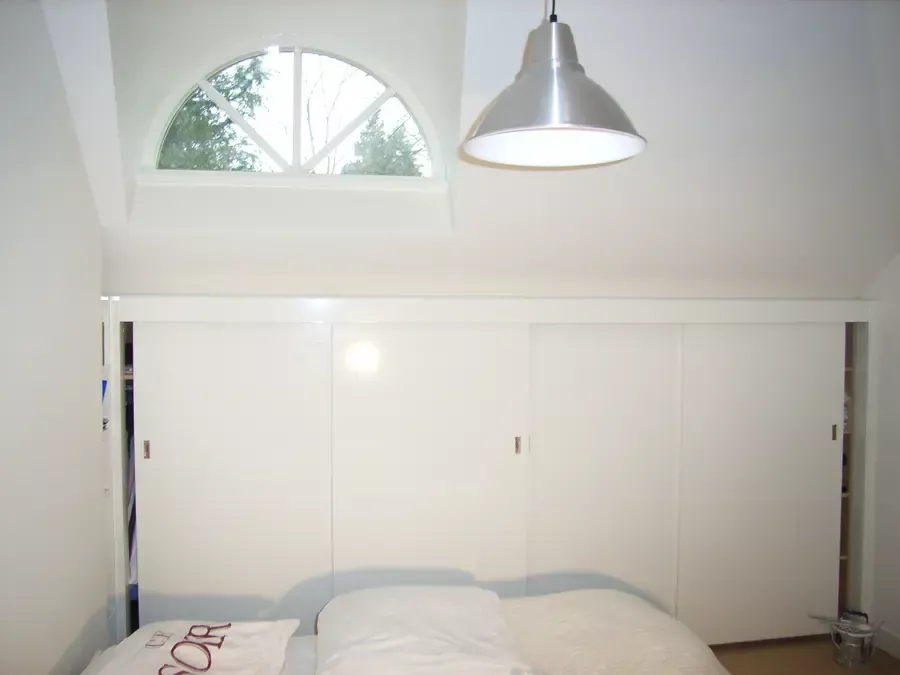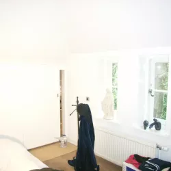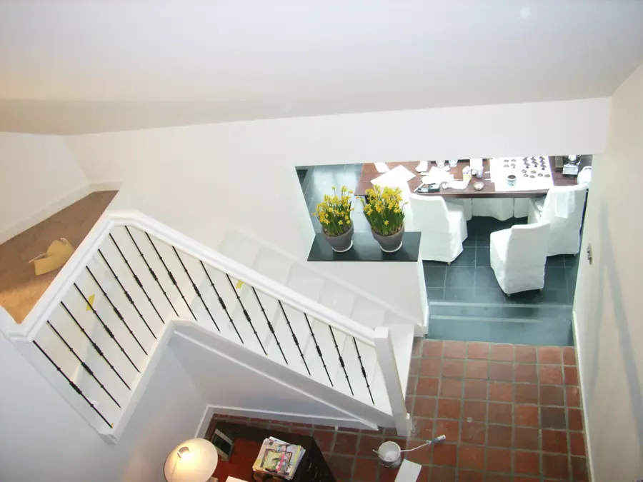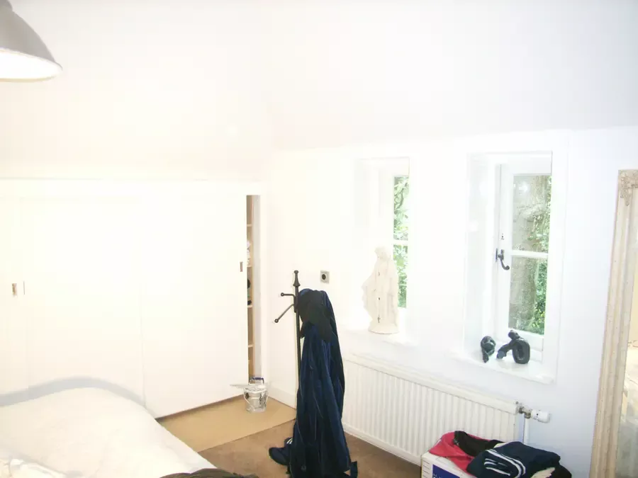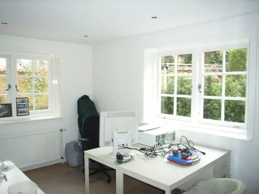 Binnen hebben we het houtwerk afgewerkt met hoogglansverf en de wanden voorzien van een afneembare matte buitenverf, wat zorgt voor een strakke en duurzame afwerking.
