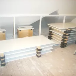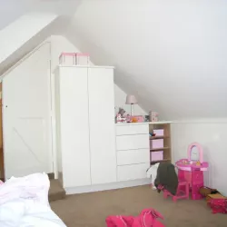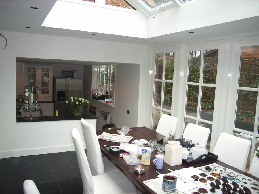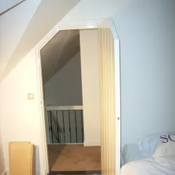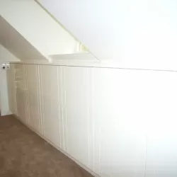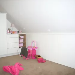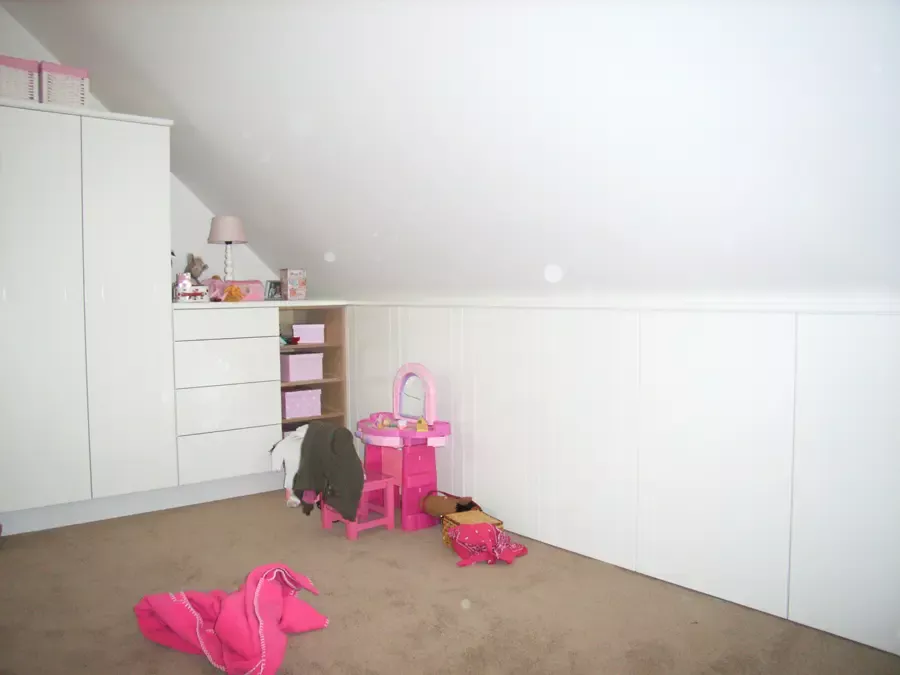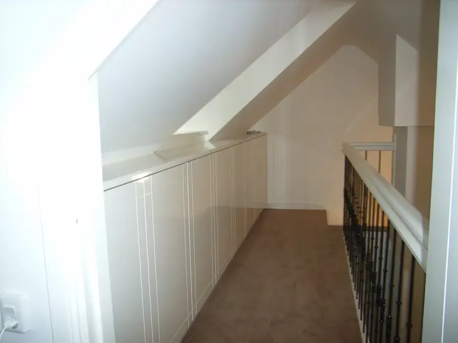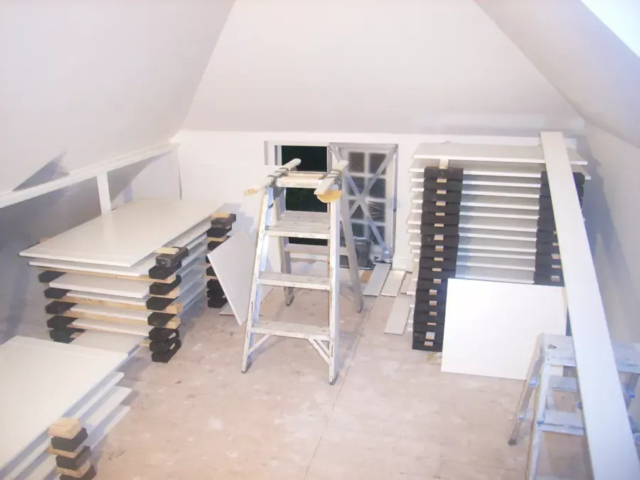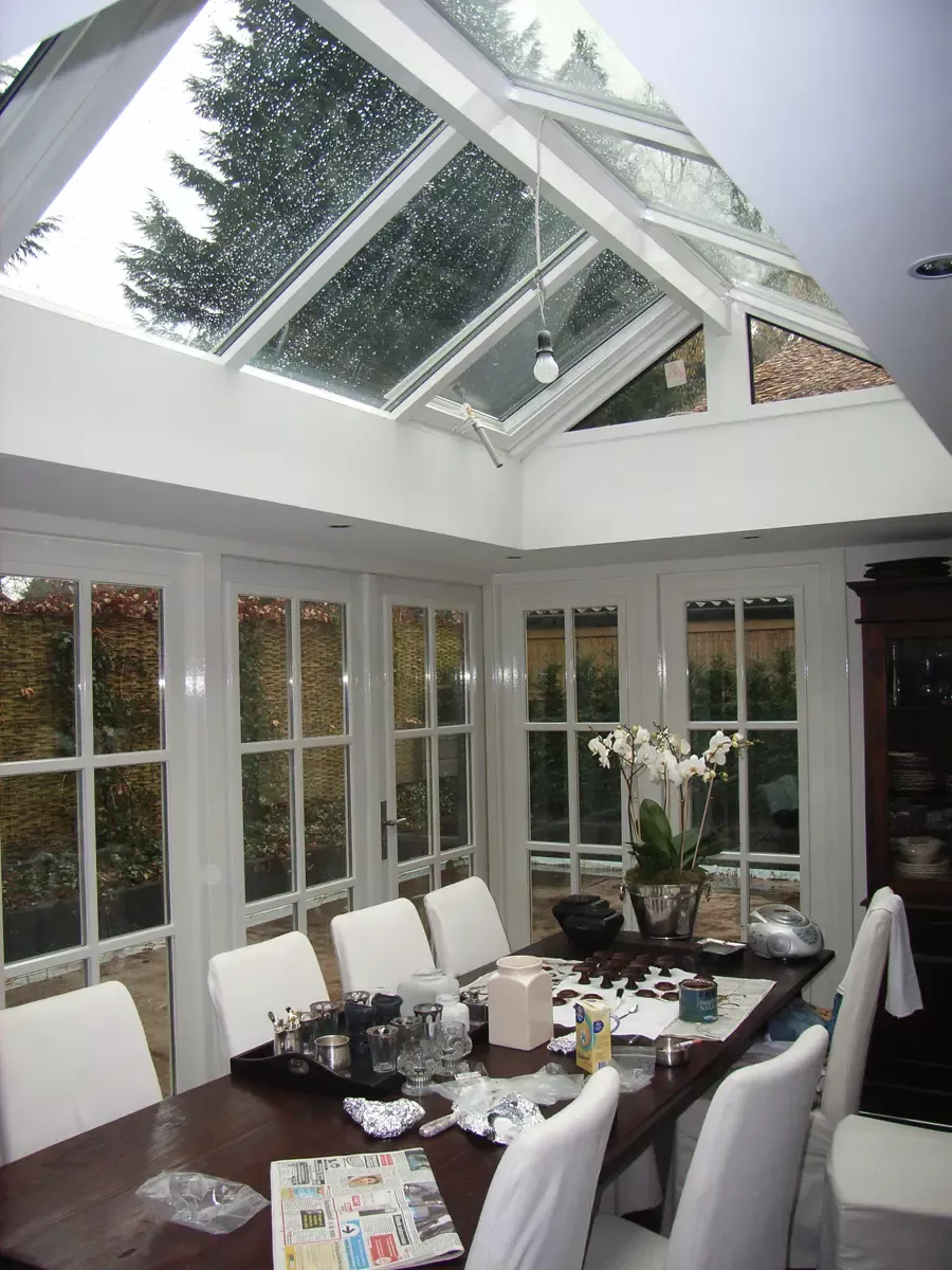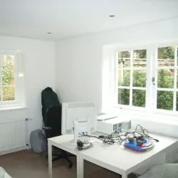 Binnen hebben we het houtwerk afgewerkt met hoogglansverf en de wanden voorzien van een afneembare matte buitenverf, wat zorgt voor een strakke en duurzame afwerking.